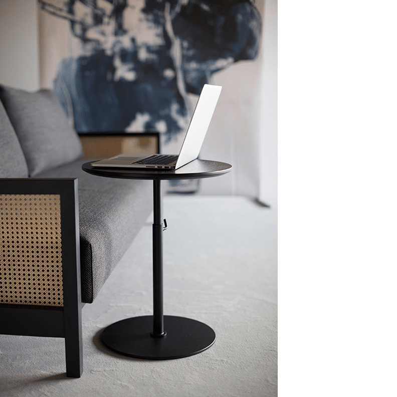 Bordet är ställbart på höjden så att det går att höja och sänka.